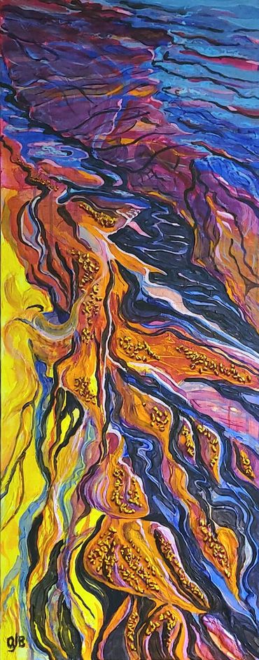 There is a sense of freedom in her process: unexpected color choices, layered marks, and improvisation that give each piece a pulse of energy and honesty. Nothing is overworked or overly planned. Instead, the work remains open, expressive, and alive—allowing the viewer to discover their own meaning within it.