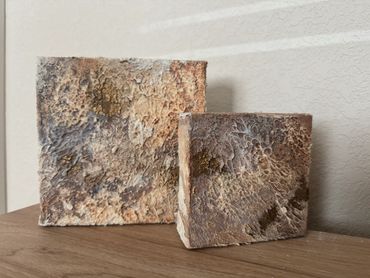 Lauren's pieces often resemble weathered cliffs, ancient walls, or shifting topographies. They are not just landscapes, but emotional terrains—markers of the hardest and most transformative seasons of life.